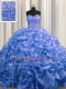 Pick Ups Court Train Ball Gowns Quinceanera Gowns Blue Sweetheart Organza Sleeveless With Train Lace Up