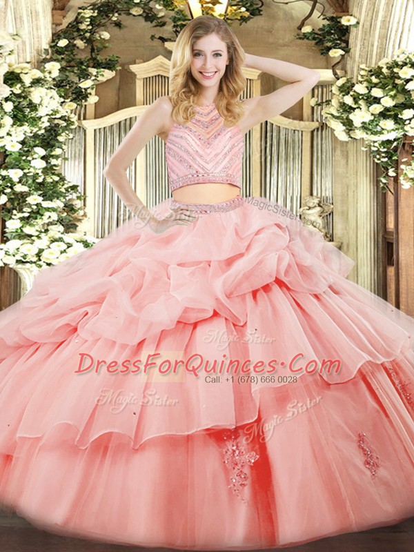 Pink Zipper Sweet 16 Dress Beading and Ruffles Sleeveless Floor Length
