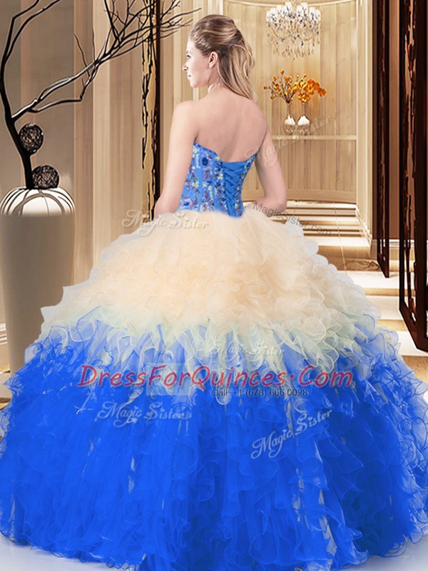 Popular Multi-color Quinceanera Gown Military Ball and Sweet 16 and For with Embroidery and Ruffles Sweetheart Sleeveless Lace Up