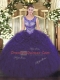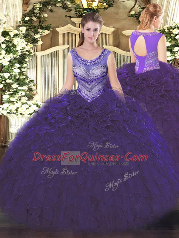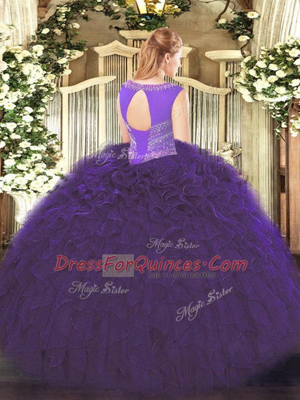 Pretty Floor Length Purple Ball Gown Prom Dress Scoop Sleeveless Lace Up