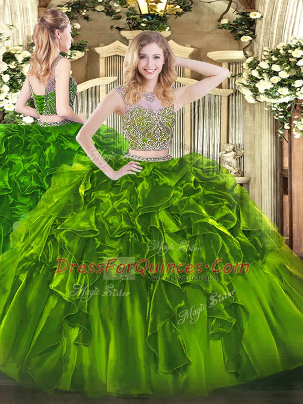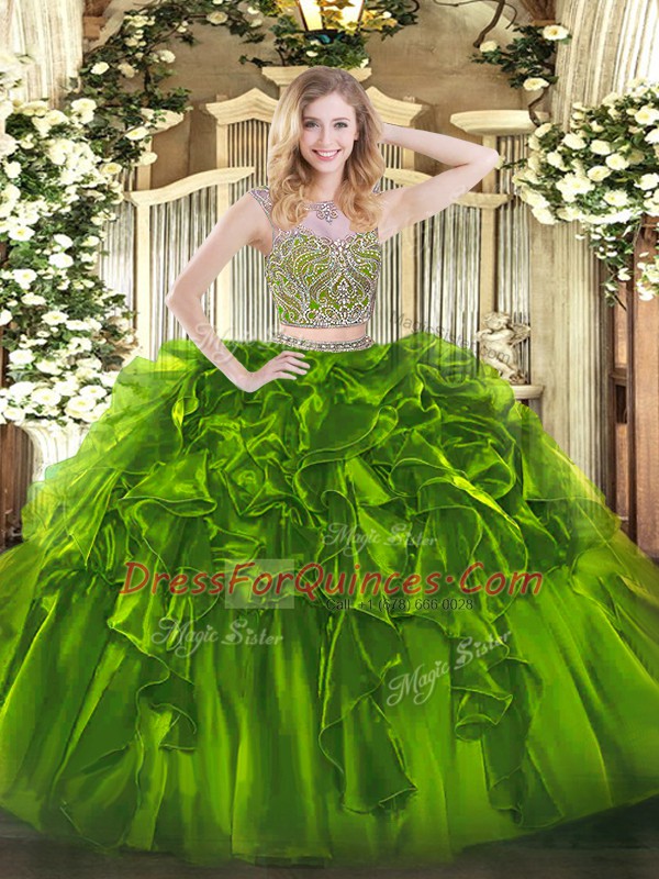 Pretty Floor Length Two Pieces Sleeveless Olive Green Quinceanera Dress Lace Up