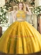 Pretty Gold Sleeveless Beading Floor Length Quince Ball Gowns