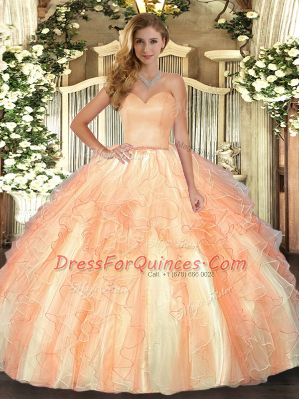 Pretty Sweetheart Sleeveless Ball Gown Prom Dress Floor Length Ruffles Orange Organza