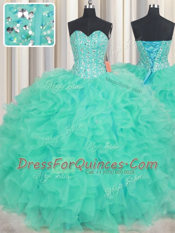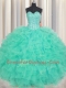 Pretty Turquoise Sleeveless Beading and Ruffles Floor Length Quince Ball Gowns
