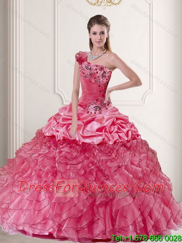 Pretty Watermelon 2015 Quinceanera Dress with Appliques and Ruffles