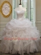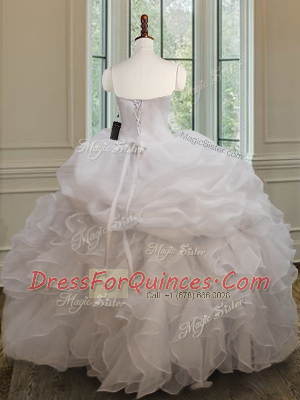 Pretty White Lace Up Sweetheart Beading and Ruffles and Pick Ups Quinceanera Dress Organza Sleeveless