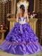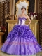 Purple Sweetheart Ball Gown Floor-length Organza Hand Made Flowers 15th Birthday Dresses