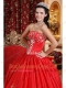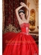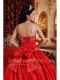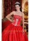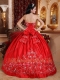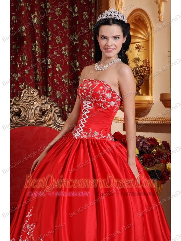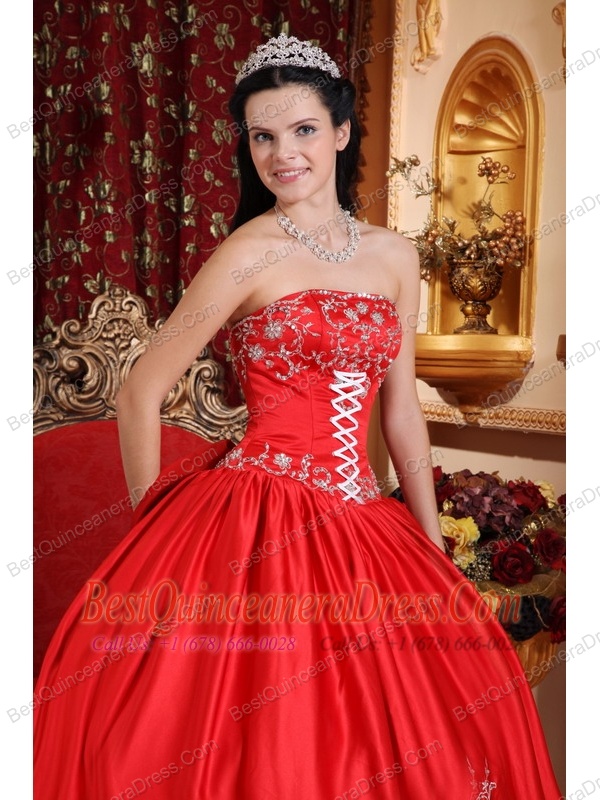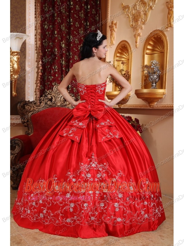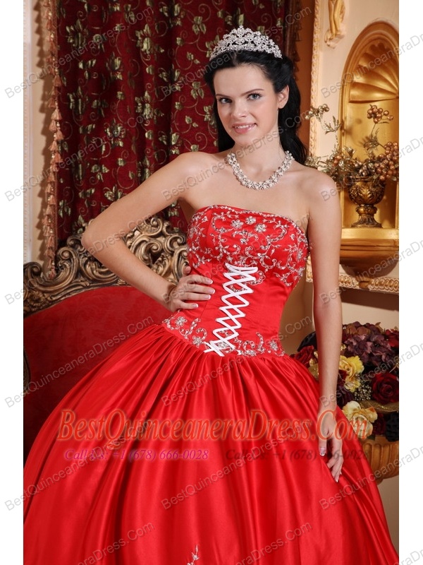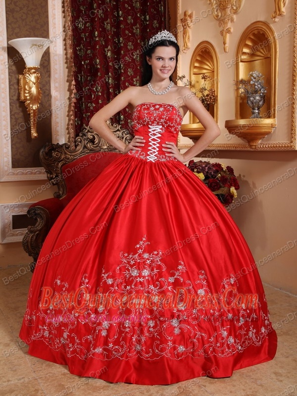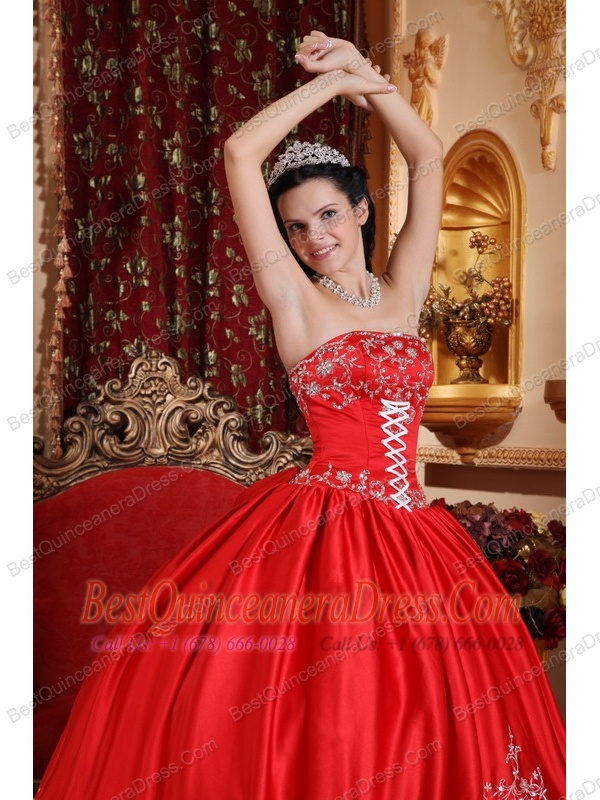 Red Ball Gown Strapless Floor-length Taffeta Embroidery Quinceanera Dress
