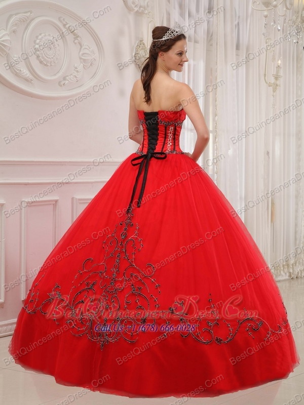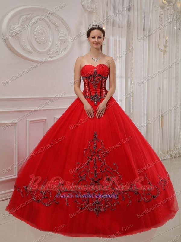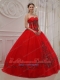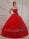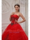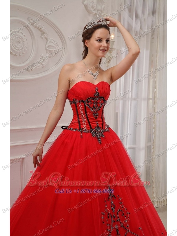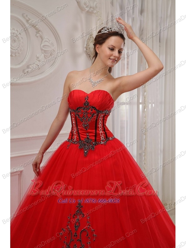Red Ball Gown Sweetheart Floor-length Tulle Appliques Quinceanera Dress