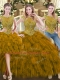 Romantic Brown Sleeveless Beading and Ruffles Floor Length 15 Quinceanera Dress