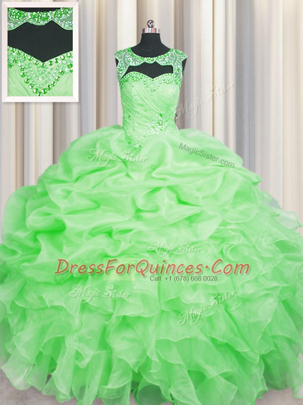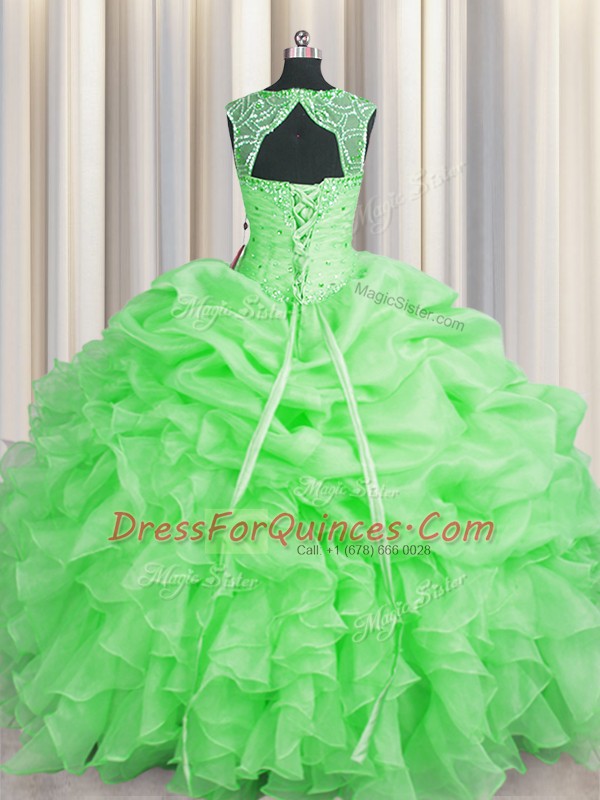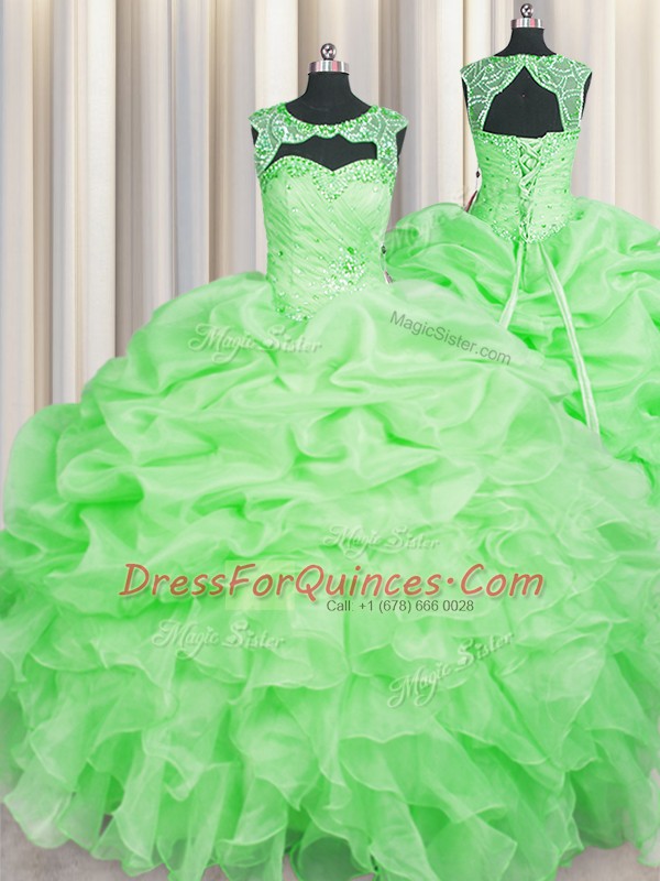 Scoop Lace Up Vestidos de Quinceanera Beading and Pick Ups Sleeveless Floor Length