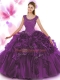 Scoop Sleeveless Organza Floor Length Zipper Sweet 16 Dress in Dark Purple with Beading and Ruffles