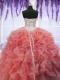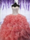 Sequins Sweetheart Sleeveless Lace Up Ball Gown Prom Dress Coral Red Organza