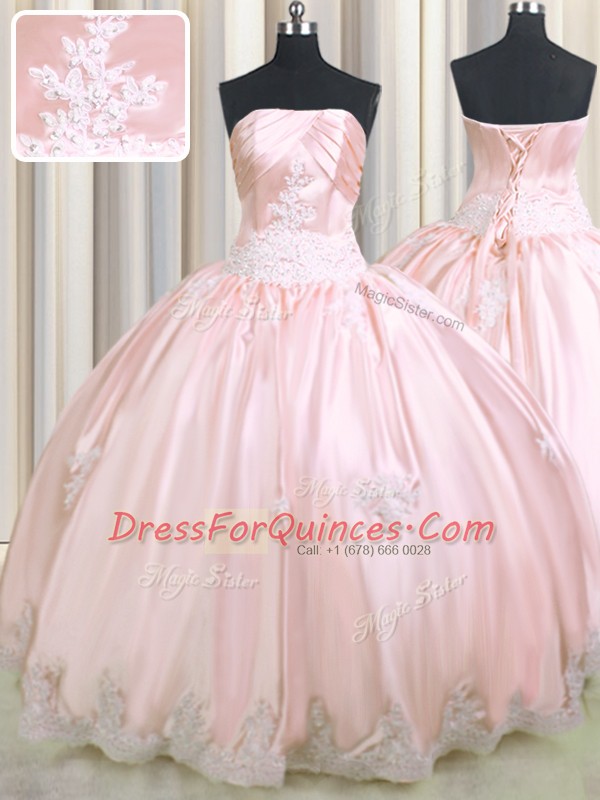 Sleeveless Lace Up Floor Length Beading and Appliques Quinceanera Gown