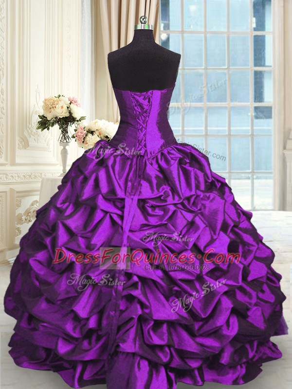 Sleeveless Lace Up Floor Length Beading and Lace and Ruching and Pick Ups Quince Ball Gowns