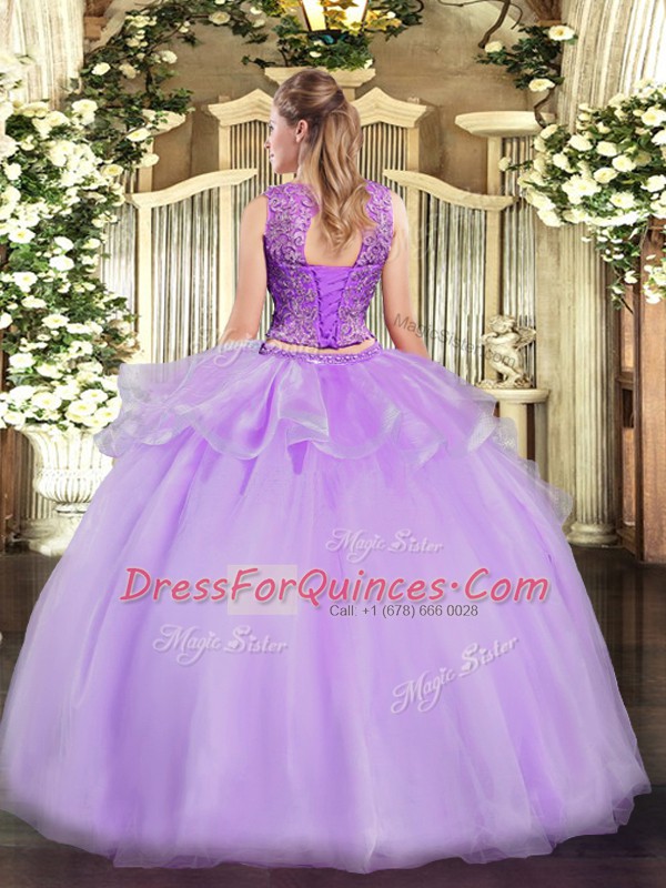 Sleeveless Lace Up Floor Length Beading Sweet 16 Dresses