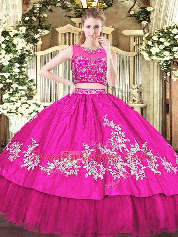 Sleeveless Tulle Floor Length Zipper 15 Quinceanera Dress in Hot Pink with Beading and Appliques