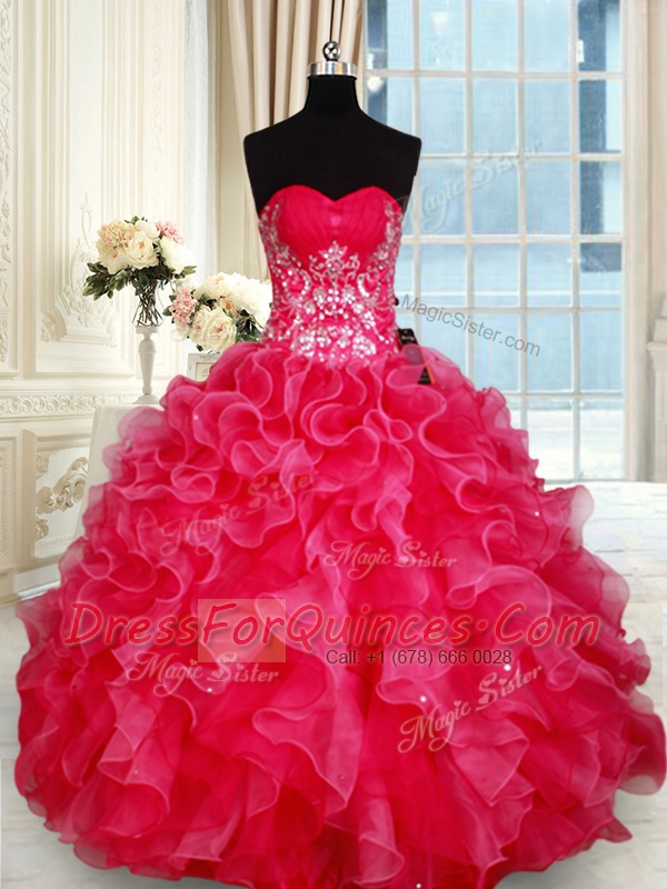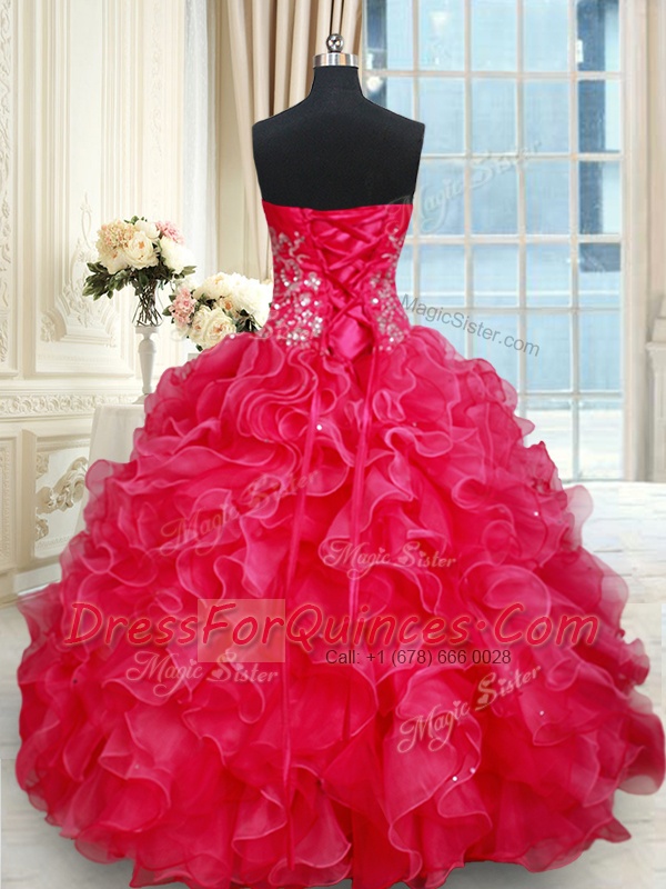 Spectacular Red Sleeveless Organza Lace Up Quinceanera Dresses for Military Ball and Sweet 16 and Quinceanera