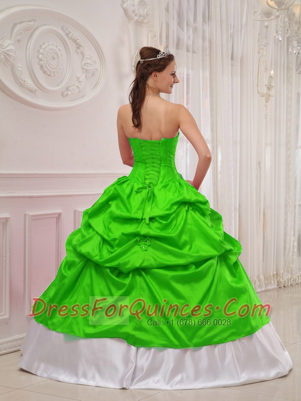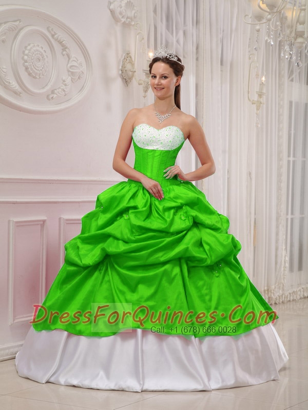 Spring Green and White Ball Gown Sweetheart 15th Birthday Dresses Taffeta Beading and Pick-ups