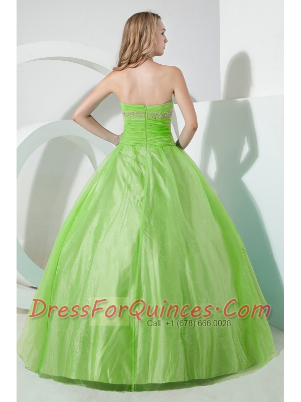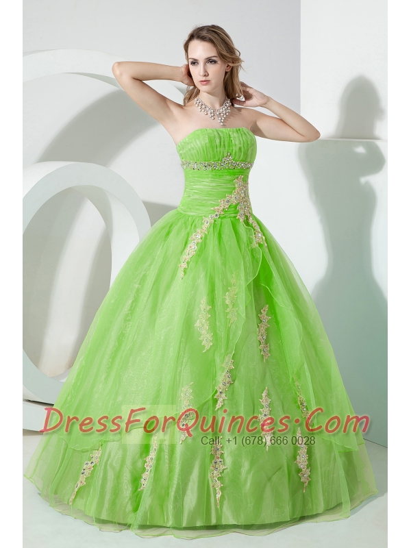 Spring Green Ball Gown Strapless 15th Birthday Dresses Organza Beading and Embroidery