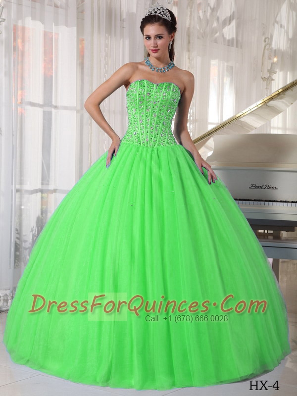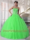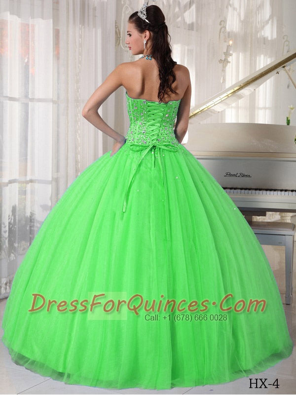 Spring Green Ball Gown Sweetheart 15th Birthday Dresses Tulle Beading