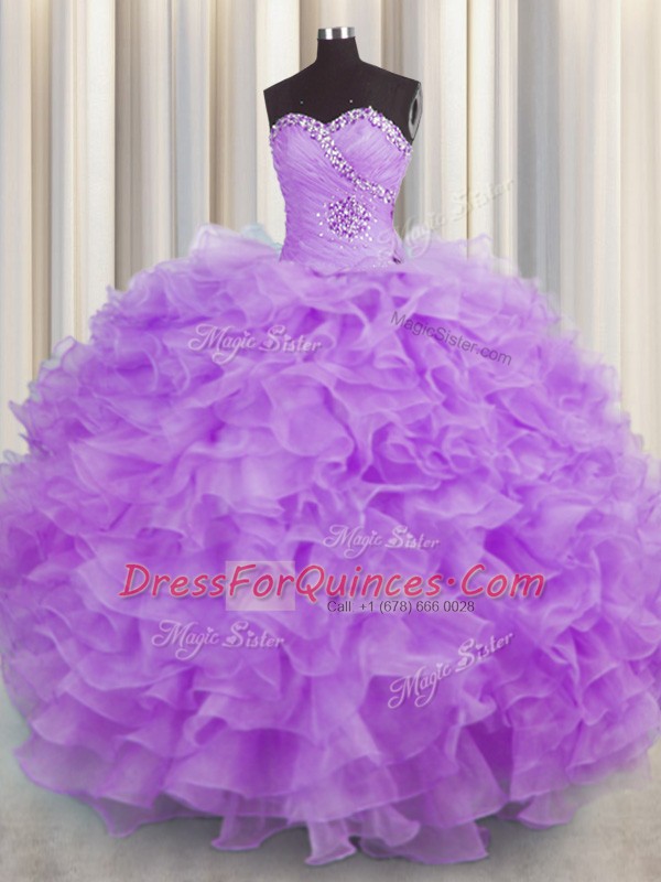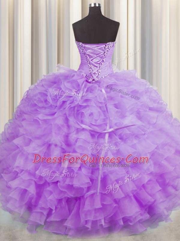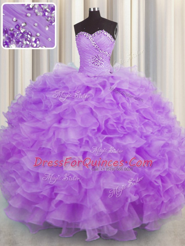 Stunning Ball Gowns Quinceanera Dress Lilac Sweetheart Organza Sleeveless Floor Length Lace Up
