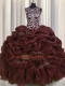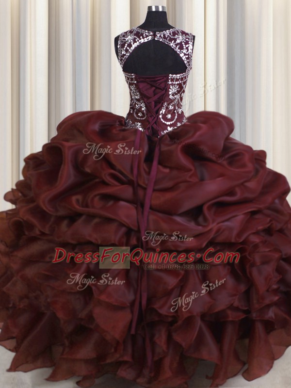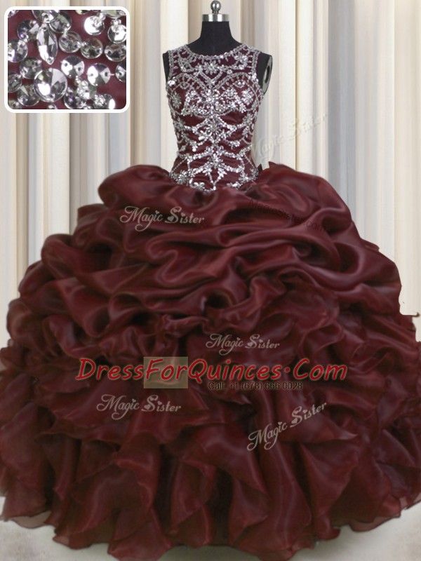 Stunning See Through Sleeveless Lace Up Floor Length Beading and Pick Ups Quinceanera Dress