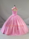 Stylish Tulle Halter Top Sleeveless Lace Up Beading Sweet 16 Quinceanera Dress in Baby Pink