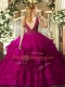 Sumptuous V-neck Sleeveless Backless Vestidos de Quinceanera Fuchsia Organza
