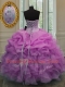 Superior Floor Length Lace Up Ball Gown Prom Dress Lilac for Military Ball and Sweet 16 and Quinceanera with Beading and Ruffles and Pick Ups
