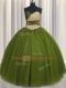 Superior Sweetheart Sleeveless Quinceanera Dress Floor Length Beading and Ruching and Belt Olive Green Tulle