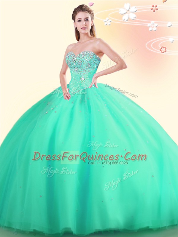 Sweetheart Sleeveless Lace Up 15 Quinceanera Dress Apple Green Tulle