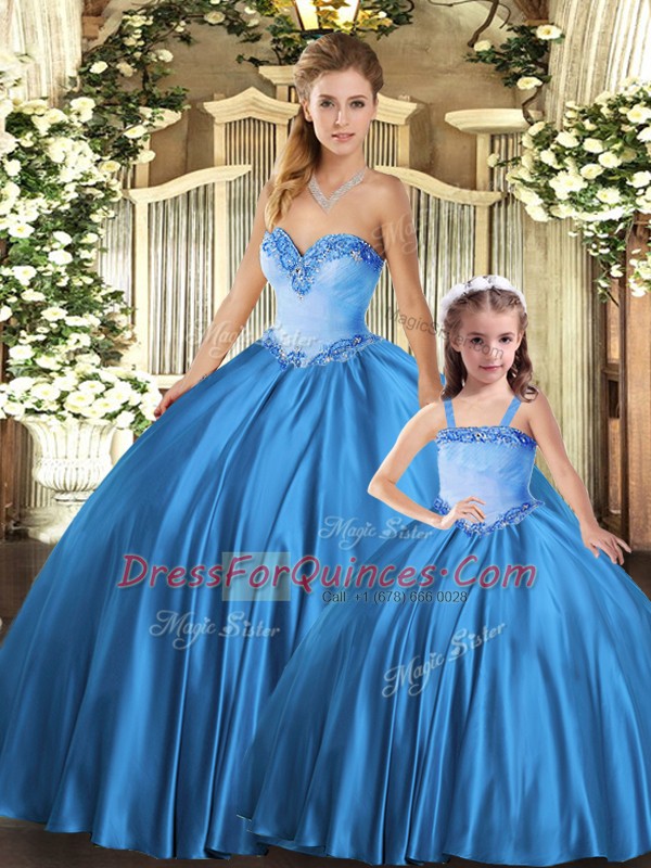 Sweetheart Sleeveless Quinceanera Dresses Floor Length Beading Teal Tulle