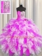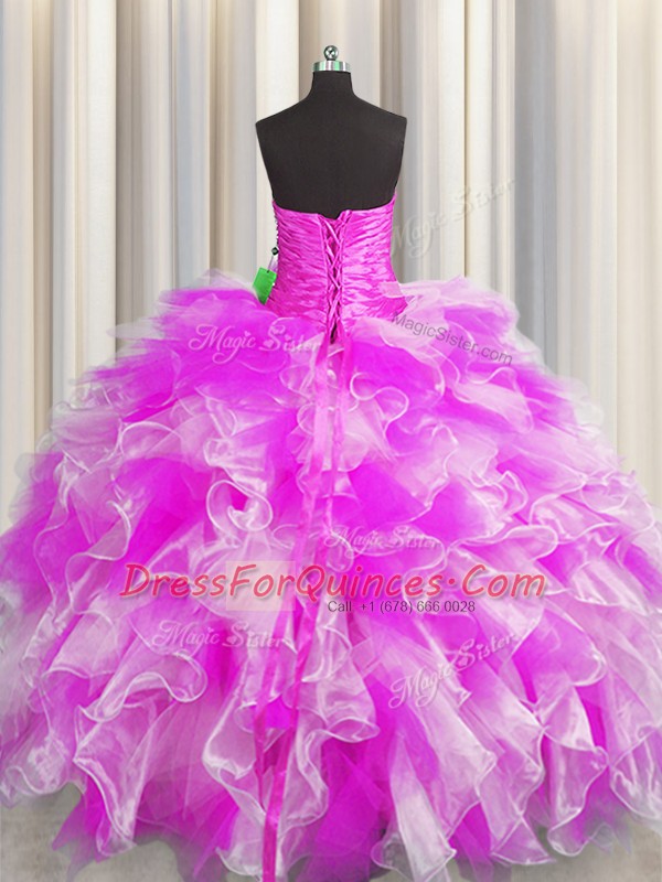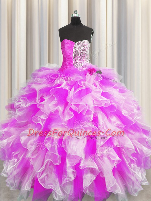 Sweetheart Sleeveless Quinceanera Gown Floor Length Beading and Ruffles and Ruching Multi-color Organza