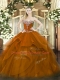 Sweetheart Sleeveless Quinceanera Gown Floor Length Beading and Ruffles Brown Tulle