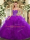 Sweetheart Sleeveless Quinceanera Gown Floor Length Beading and Ruffles Purple Tulle