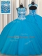 Teal Lace Up Scoop Beading Ball Gown Prom Dress Tulle Sleeveless