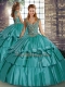 Teal Sleeveless Floor Length Beading and Ruffled Layers Lace Up Quinceanera Gowns