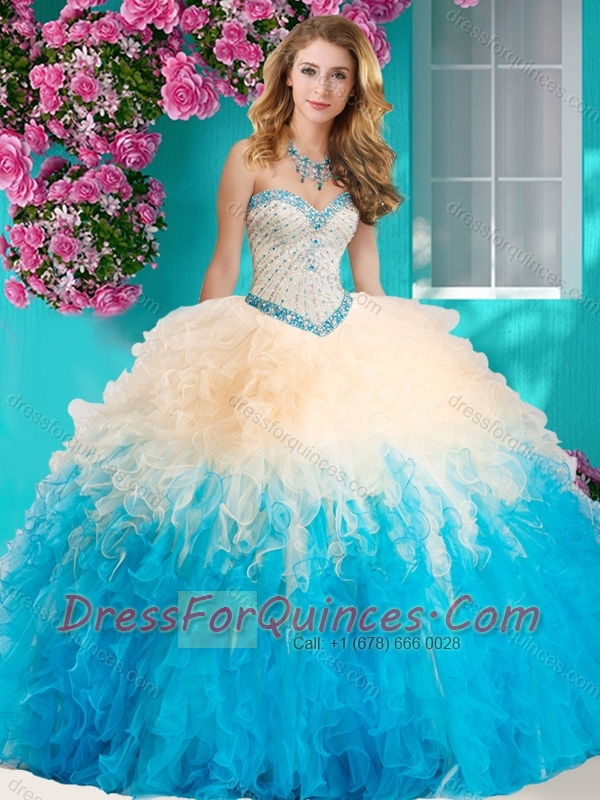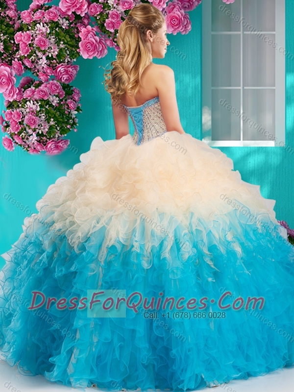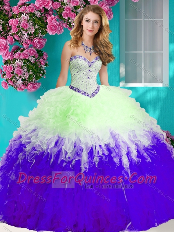 The Super Hot Gradient Color Big Puffy 15th Birthday Dresses with Beading and Ruffles