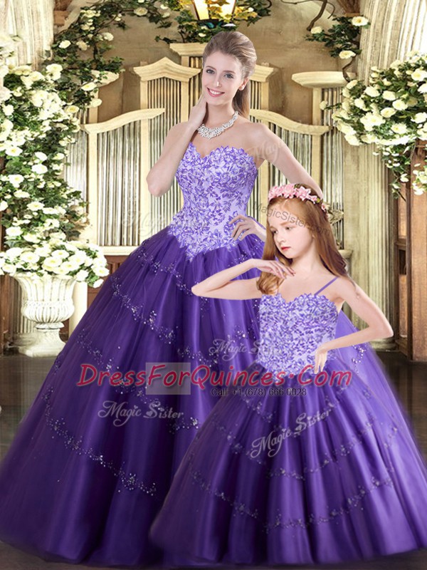 Top Selling Purple Sweetheart Lace Up Beading 15 Quinceanera Dress Sleeveless