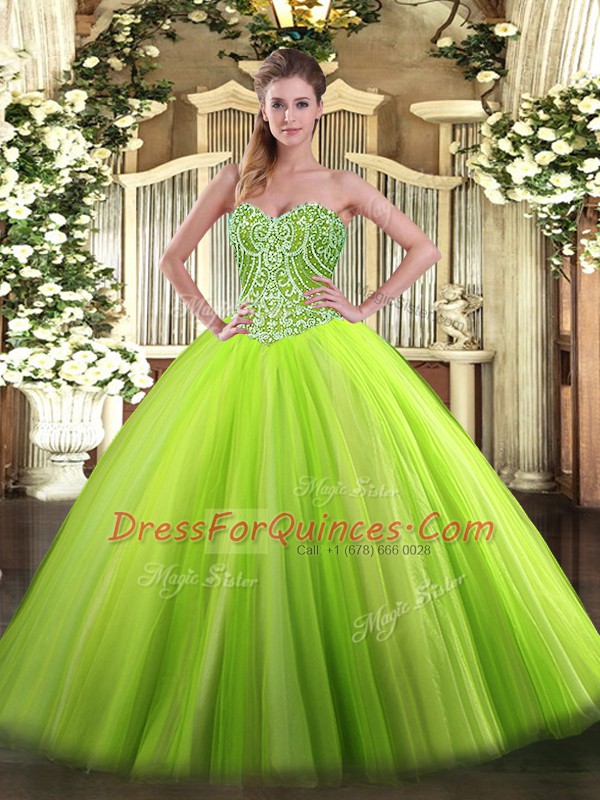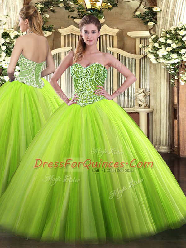 Tulle Lace Up Sweetheart Sleeveless Floor Length Ball Gown Prom Dress Beading