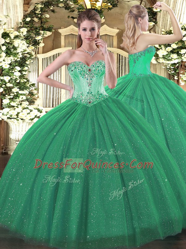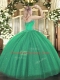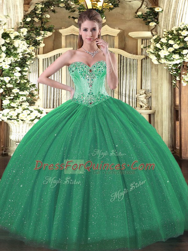 Turquoise Ball Gowns Tulle and Sequined Sweetheart Sleeveless Beading Floor Length Lace Up Quinceanera Dress
