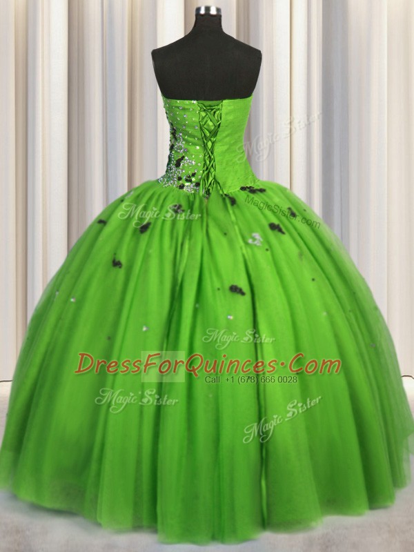 Unique Sleeveless Beading and Appliques Floor Length 15th Birthday Dress