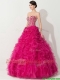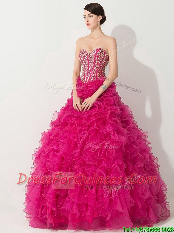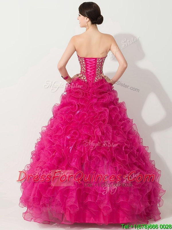 Visible Boning Hot Pink 15th Birthday Gown with Beading and Ruffles