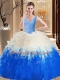V-neck Sleeveless Zipper Quinceanera Dresses Blue And White Tulle