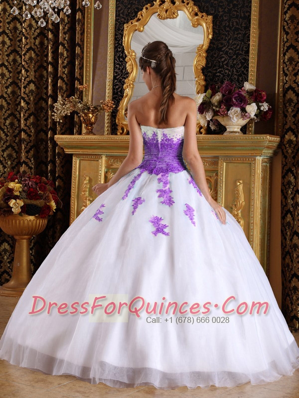 White and Purple Ball Gown Sweetheart 15th Birthday Dresses with Appliques Organza