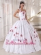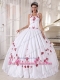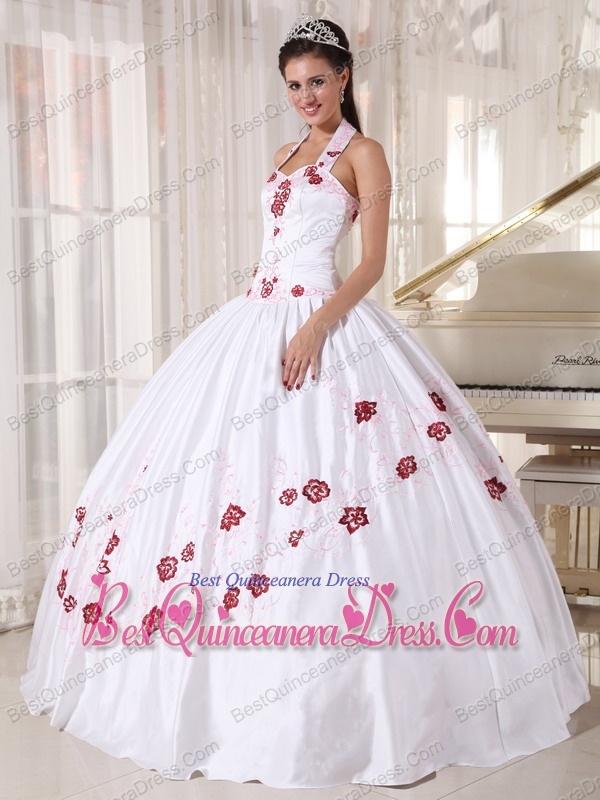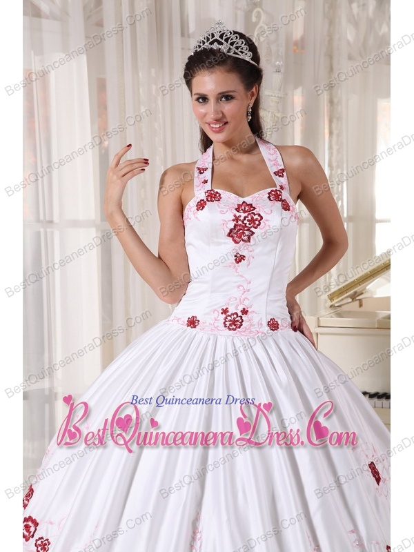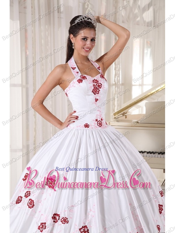 White Ball Gown Halter Floor-length Taffeta Embroidery Quinceanera Dress
