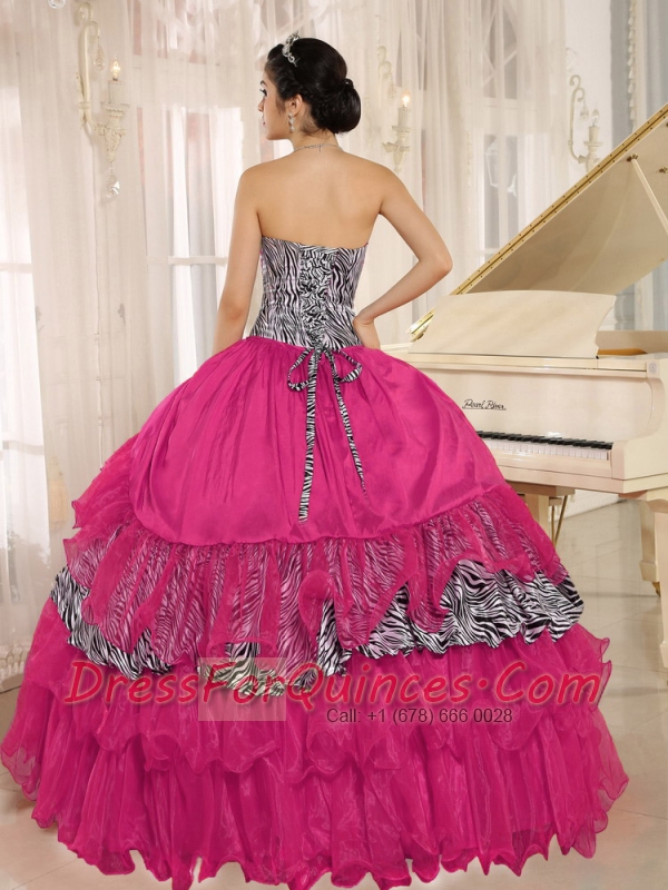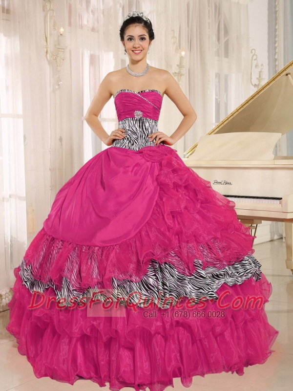Wholesale Coral Red Sweetheart Ruffles 15th Birthday Dresses With Zebra and Beading