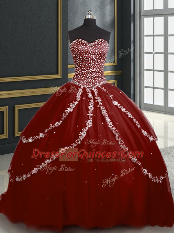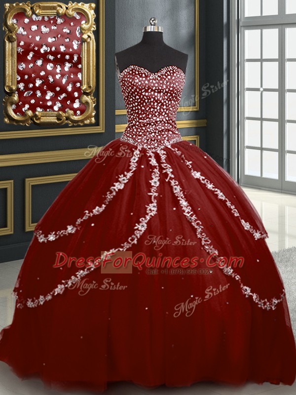 With Train Ball Gowns Sleeveless Burgundy Quinceanera Gown Brush Train Lace Up