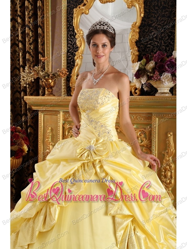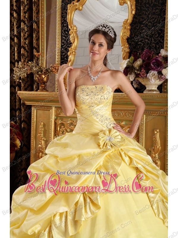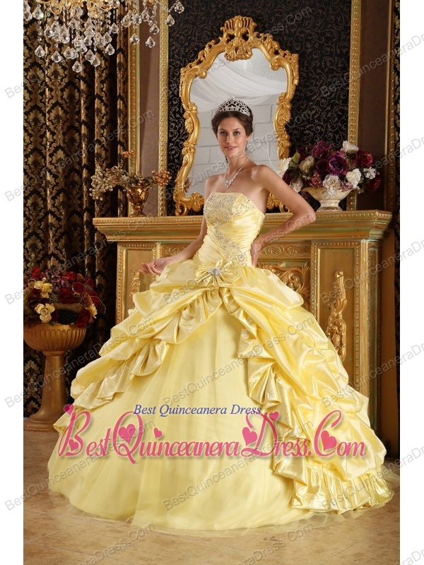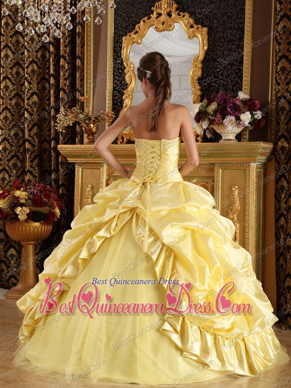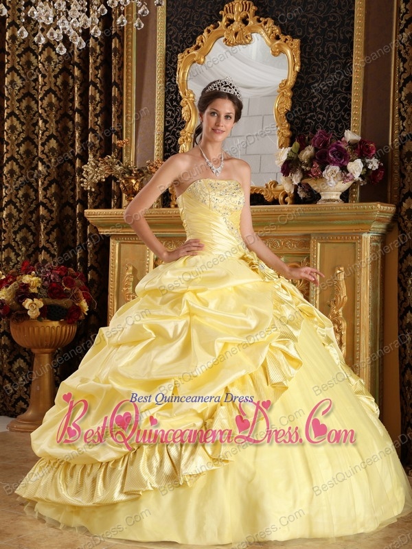 Yellow Ball Gown Floor-length Taffeta and Tulle Beading Quinceanera Dress